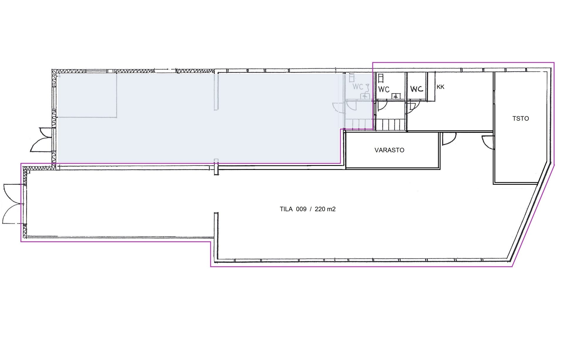 Tilan ovet maan tasalla josta lastaus-/purku onnistuu helposti.